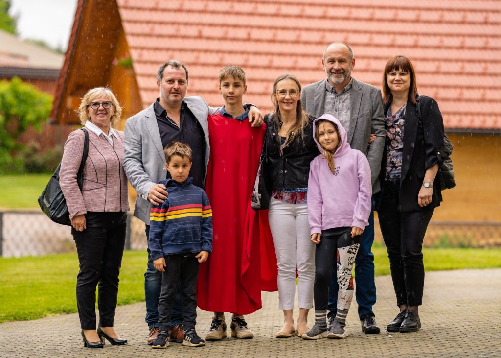 - fotografiranje z družino pred oltarjem.
